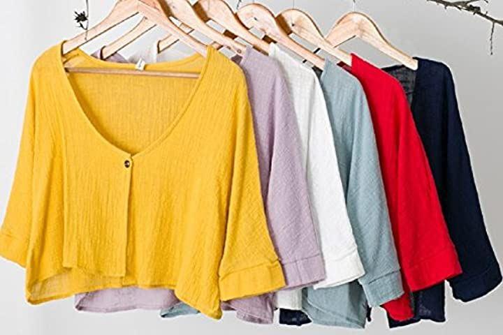 春 夏 秋 コットン uv 羽織 もの ボレロ カーディガン レディース綿素材を使用しているノーカラーボレロは、