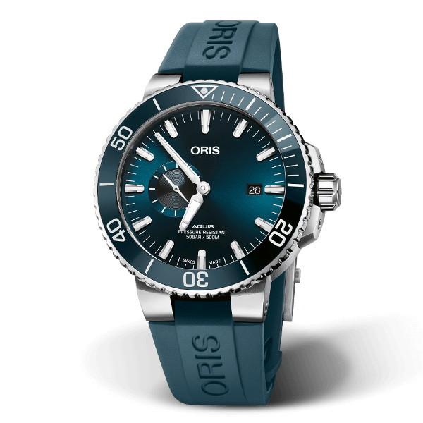 新たな深みへアクイススモールセコンドは、9時位置にスーパールミノバコーティングのスモールセコンドを備えており、薄暗いところでも時計が動いていることを確認出来ます。これはダイバーズウォッチに欠かせない機能です。また、30気圧(300m)防水のアクイスデイトモデル同様ダイバーに安心のねじ込み式リューズ、セラミックインサートの逆回転防止ベゼル、オリスが特許を有するエクステンション機能付きフォールディングクラスプなどに加え、更に50気圧(500m)防水と機能を高めました。