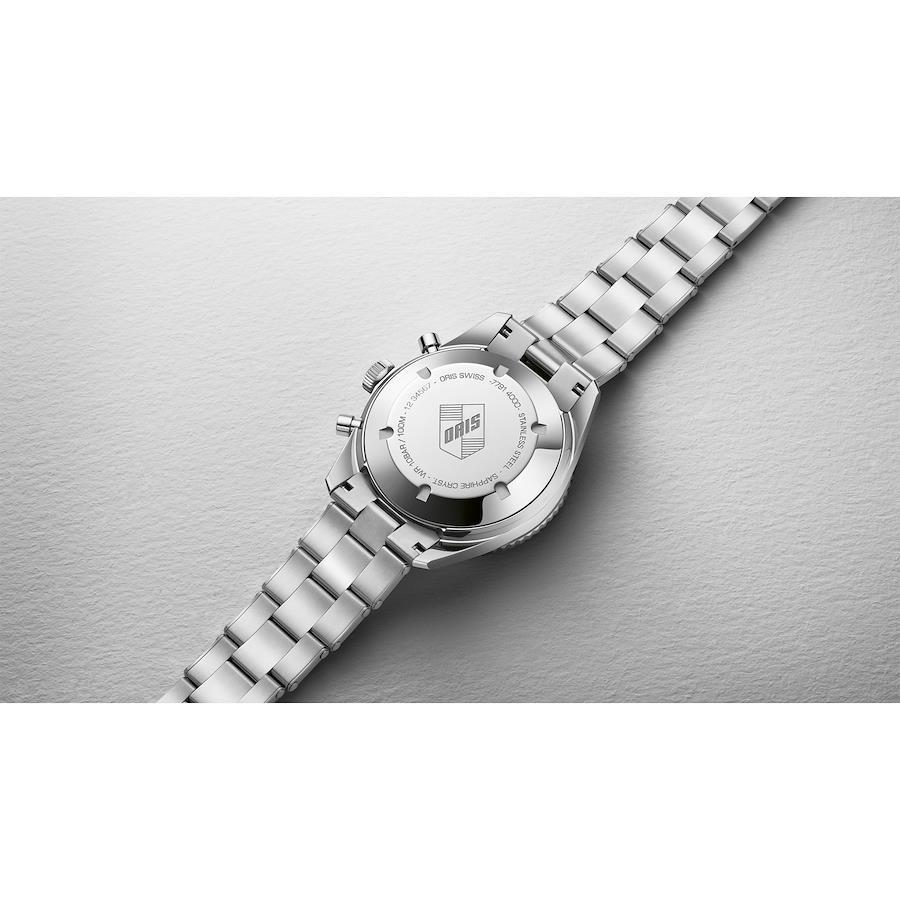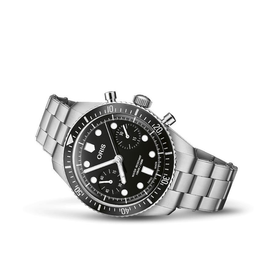 ミッドセンチュリーのデザインを踏襲したダイバーズ65シリーズは、1965年にオリスが発表した初代ダイバーズウオッチのリバイバルです。この度、40ミリケースのクロノグラフが、モノクロデザインのダイアルで新たに登場しました。メタルブレスレットと、サステナブルなチェルボボランテの鹿革ストラップとの2タイプからお選びいただけます。絶妙な角度でカーブしたラグのケースに、逆回転防止ベゼル、ビンテージテイストのクロノグラフボタンがタイムレスな魅力を湛えます。ムーブメントは48時間パワーリザーブのスイス製自動巻キャリバーです。