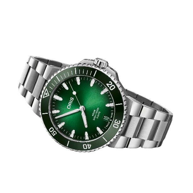ORISのデザイナーにより全てのパーツにおいてディテールの見直しが行われ、細部へのこだわりによって刷新された結果、これまでのアクイスに比べてより洗練された、高級感の感じられるダイバーズウォッチに仕上がっています。微細なアップデートを重ねた結果、新アクイスシリーズは見た目も着け心地も大きく向上されました。新しい基準アクイスデイト キャリバー400は、オリスの新しい自社製自動巻キャリバーを搭載したダイバーズウォッチです。キャリバー400は、高精度、高耐磁性で5日間パワーリザーブ、オーバーホール推奨期間10年、品質保証期間10年のムーブメントで、新しい基準を設定するものです。