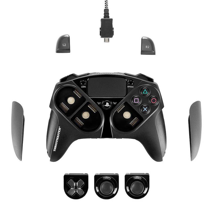 PlayStation4オフィシャルライセンス取得のプロゲームコントローラーアナログスティック、十字キーの各モジュールの配置をカスタマイズ可能エルゴノミクス(人間工学)に基づいて配置された、割り当て可能な背面ボタン4個搭載専用ソフトウェア「THRUSTMAPPER」でコントローラーのすべての設定を簡単にカスタマイズ。ボタンの再マッピング、ミニスティック、トリガー感度、振動を設定可能