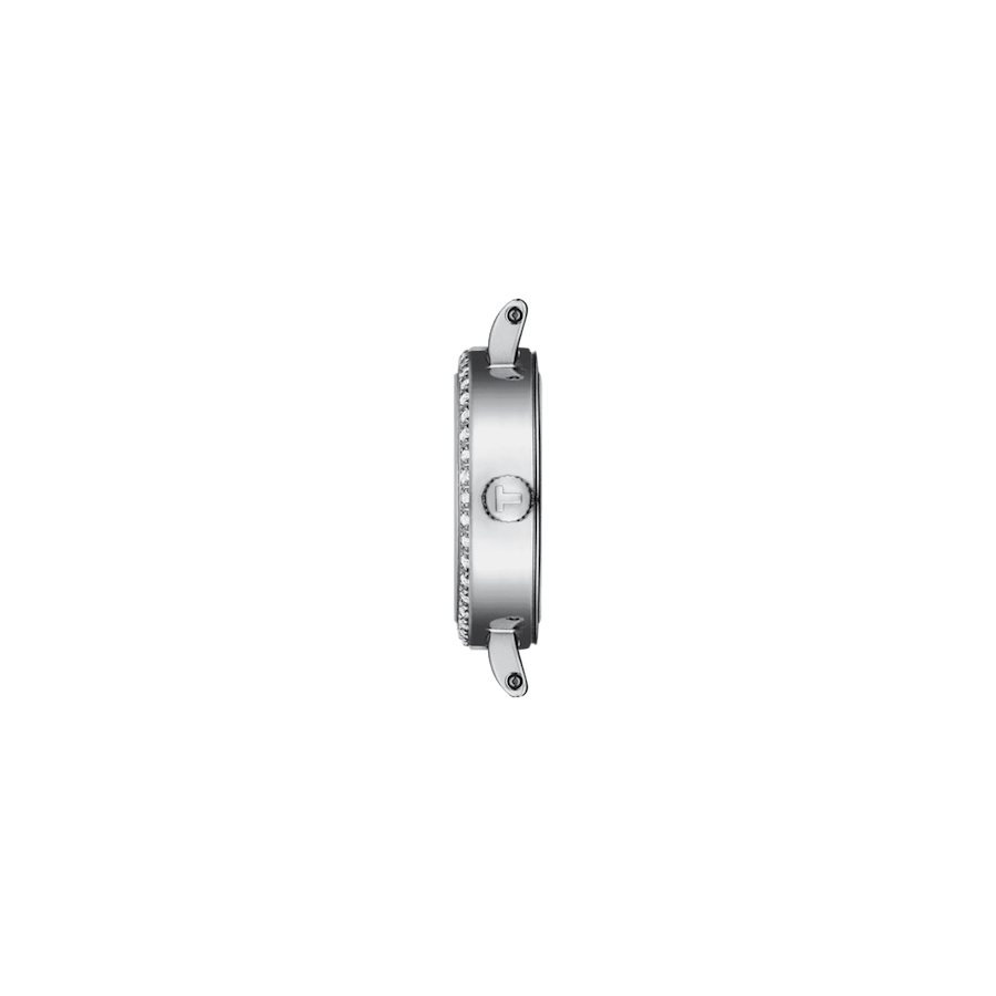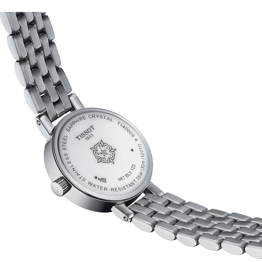TISSOT Lovelyは洗練されたエレガンスと時代を超越したデザインの時計です。すべてのTISSOT Lovelyウォッチは傷のつきにくいサファイアクリスタルを採用し、正確なスイス製クォーツムーブメントを搭載しています。このモデルは316Lステンレススチール製ケースを採用。12時、3時、6時、9時位置のインデックスにはダイヤモンドがあしらわれています。またベゼルにも42個のダイヤモンドがセッティングされ、煌びやかな輝きを放ちます。