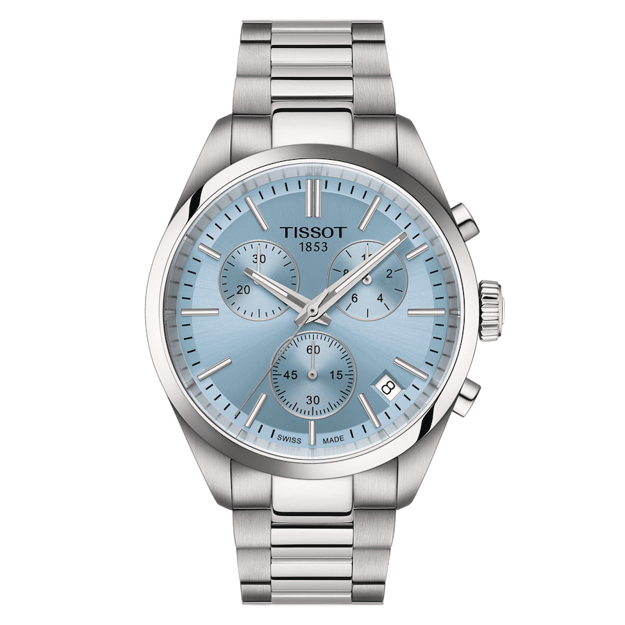 PR100コレクションは、様々なカラーのクラシックなクォーツ・クロノグラフです。スポーティーでありながら上品なこのタイムピースは、ブレスレットの中間にポリッシュ仕上げを施し、より光沢のある外観に仕上げています。G10.212クロノ・クォーツ・ムーブメントは、10気圧(100m/330フィート)防水:を備え、精度と堅牢性を提供します。また、針状の針にはスーパールミノバ?コーティングが施され暗い場所での視認性も保証されています。