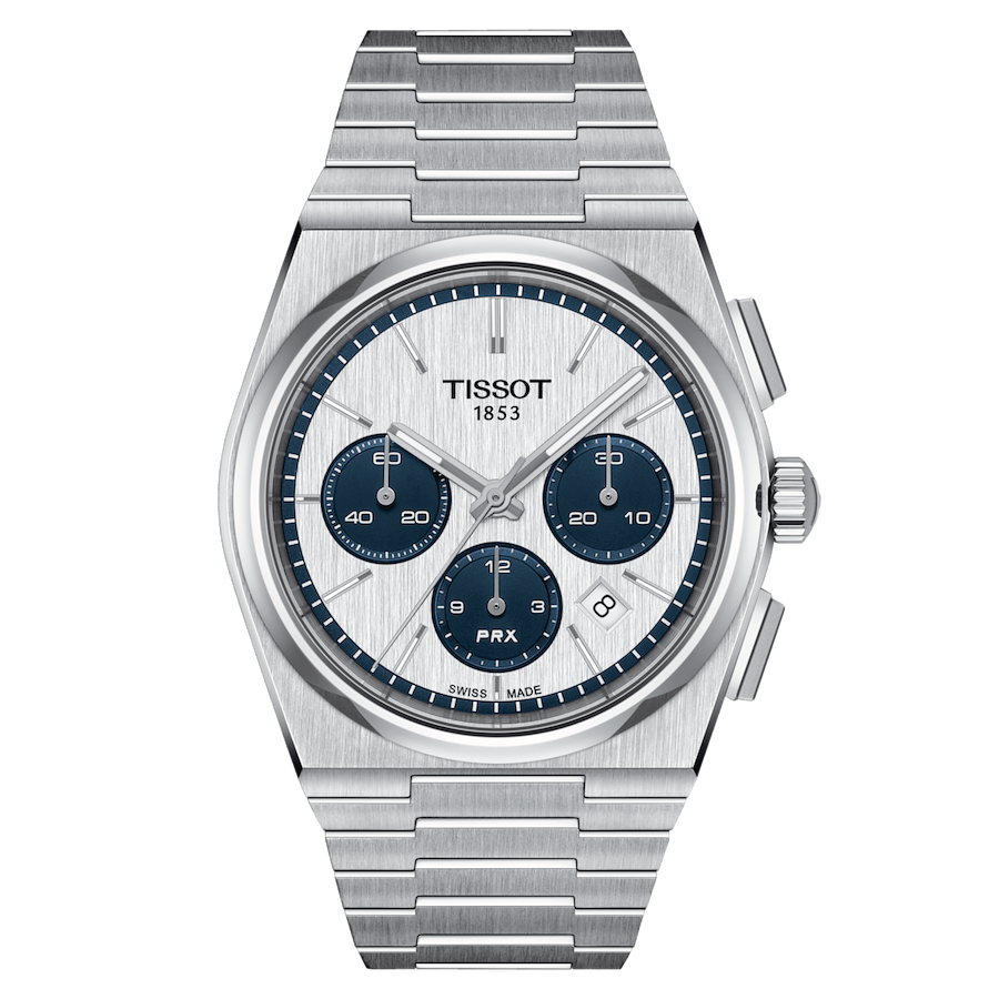 1978年に誕生したTISSOTのケースに21世紀の機能を詰め込んだPRXクロノは、デザインにこだわる人のために作られた時計ファン必携の一品です。この42mmのサテン仕上げのスチールウォッチはPRXの滑らかで角ばったフォルムを踏襲し、いわゆる「パンダ」ダイアルで1970年代のゆったりとしたスポーツウォッチスタイルをさらに高めています。PRXクロノはキャリバーValjoux A05.H31を搭載し、クラシックな3時、6時、9時位置のクロノグラフダイヤルレイアウトと最長60時間のパワーリザーブを備えています。