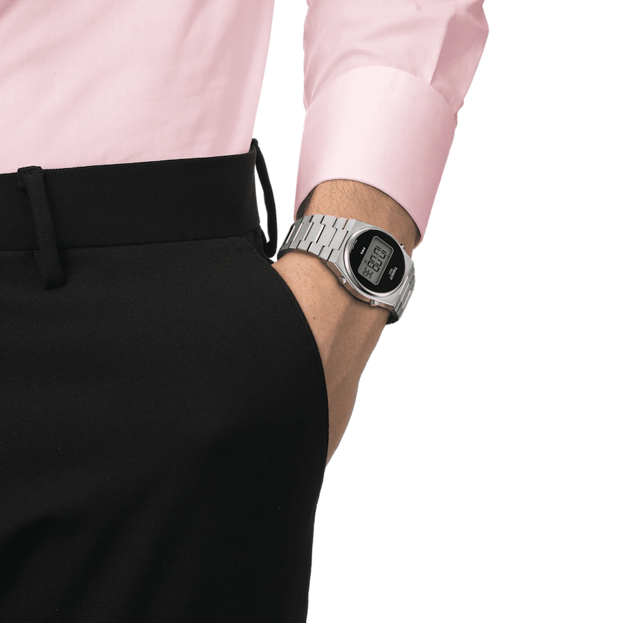 1978年に発表されたPRXのアイコニックなデザインとティソのデジタルクオーツ(キャリバー 4012)が調和したティソ PRX デジタル。過去のレガシーとデジタルとのハイブリッドを見事に表現し、レトロな美しさとモダニズムをシームレスに融合させたこの時計は、今日の先駆者のためのタイムキーパーです。35mmと40mm、そして多彩なカラーバリエーションから選べるPRX デジタルは、あらゆる手首に対応し、デュアルタイムゾーン、デイデイト、クロノグラフなどの多彩な機能が多くのニーズに応えます。100m防水:で、サテン仕上げのブレスレットとトリプルブレード・フォールディング・クラスプで固定されたこれらのタイムピースは、耐久性と快適性の両方を兼ね備えて作られています。ティソ PRX デジタルコレクションは、時を超えた旅、過去と未来への賛辞を象徴しています。