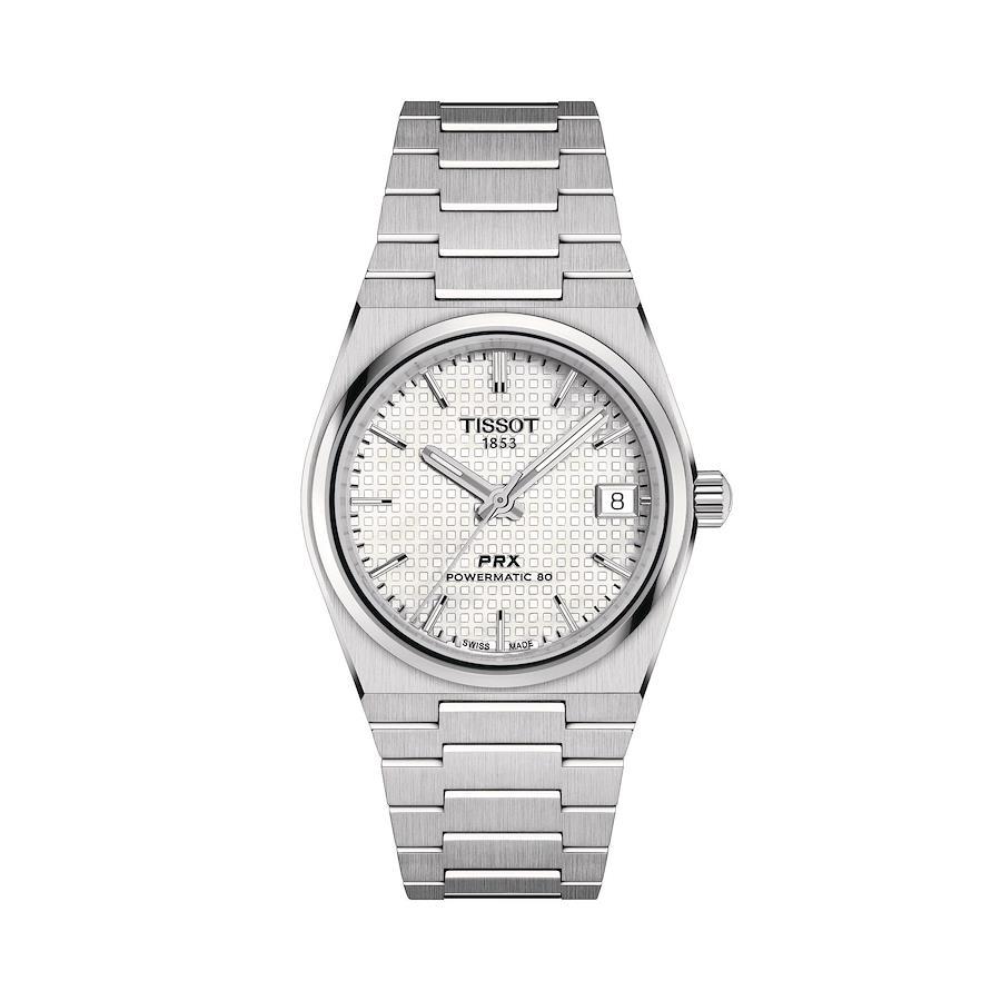 クラシックな魅力とモダンな洗練が見事に融合したTissot PRX 35mm Powermatic 80を発表。この35mmモデルは、1978年の誕生に敬意を表し、高品質なステンレススティール製ケースと魅惑的なホワイトマザーオブパール文字盤を備えています。繊細なワッフル模様の文字盤は、一般的なマザー・オブ・パールのデザインとは異なり、汎用性が高くユニセックスな魅力をもたらします。100m防水:とニヴァクロン?ヒゲゼンマイを備えたPRXは、時計製造の芸術を愛する人々のための極上の逸品です。サテン仕上げのスティール製ブレスレットとトリプルブレードのフォールディング・スティール製クラスプが、究極の着け心地を約束します。ホワイトマザーオブパールのティソPRX 35mm パワーマティック80で、あなたのスタイルを格上げしましょう。