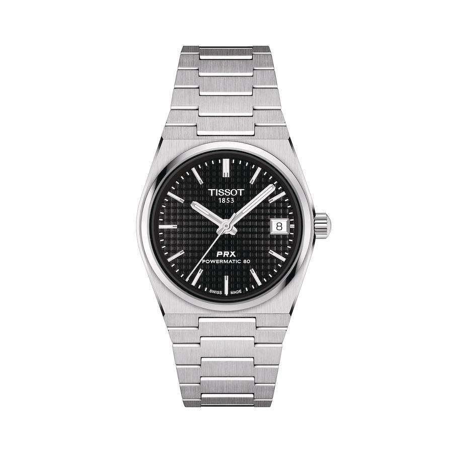 Tissot PRX 35mm Powermatic 80をご紹介します。時代を超越した魅力とモダンなクラフツマンシップの完璧なバランス。この35mmモデルは、高品質なステンレススティール製ケースと、1978年に誕生した名作にインスパイアされた魅惑的なブラックダイアルが特徴です。特徴的なワッフル文字盤パターンが、自動巻きモデルにさらなるエレガンスを添えています。100m防水:、ニヴァクロン?・ヒゲゼンマイを搭載したPRXは、スタイルにこだわる方に理想的なモデルです。サテン仕上げのスティール製ブレスレットは、トリプルブレードのフォールディングスティール製クラスプを備え、一日中快適な着け心地を約束します。ティソPRX 35mm パワーマティック 80 ブラックで、ひときわ目立つ存在になりましょう。
