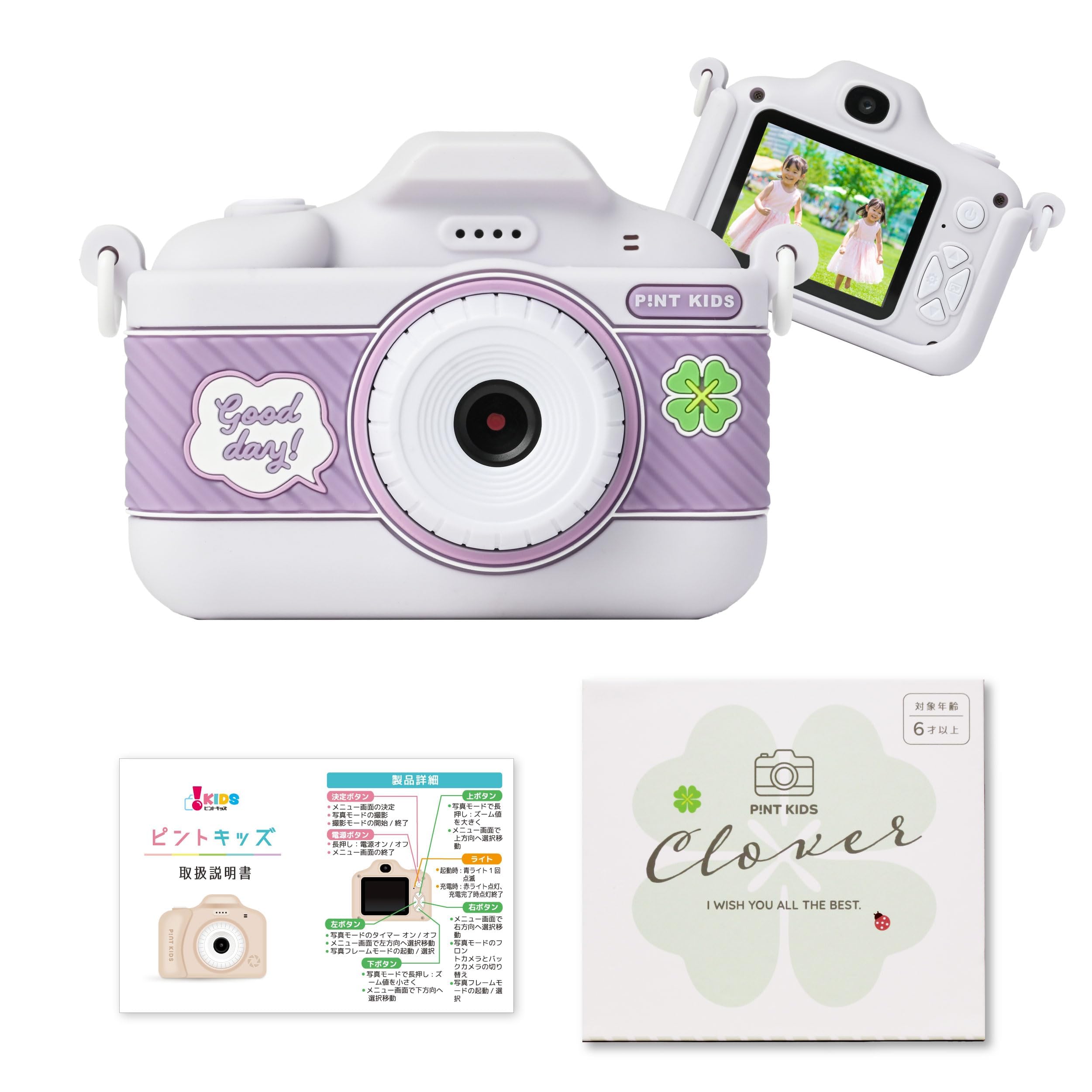 【ピントキッズだけのオリジナルデザイン】新カメラのカバーデザインは2種類が登場!2022年に登場し大ヒットした「ピントキッズWITH」からデザインを受け継いだ「WITHyou(ウィズユー)」と、今回初登場となる幸せの四つ葉をワンポイントにした「クローバー」。女の子も男の子も大好きな、ユニセックスで可愛いデザインです。大人から見てもお洒落なカラバリから選べるから、きっとお気に入りが見つかります。撮影はカメラを向けてシャッターボタンを押すだけ♪明るさやピントは周囲の環境に合わせて自動で調整。ボタンでズームもでき、気分はカメラマン!フラッシュ機能はありませんのでお子様に安心です。※WITHyou・クローバーのカバーは新カメラ専用です。これまでのピントキッズカメラに合わせて使うことは出来ません。 【自撮りや動画撮影、フレームなどの機能も満載】トイカメラですが出来ることはたくさん!インカメラも付いているからスマホのようなセルフィー撮影もOK♪写真と同じようにボタン一つで音声入りの動画も撮れちゃいます。集合写真が撮れるタイマー機能や可愛くデコれるフレーム撮影など、撮影を楽しめる機能がたっぷり入っているから飽きずに遊べます。ピントキッズだけのオリジナルデザインに一新したかわいいフレームにも注目!さらに、"ゲーム"や"音楽再生"もOK!ゲームモードにはあらかじめ複数のミニゲームを内蔵。また、メモリーカードにお手元のMP8データを入れれば音楽モードで再生できます。好きな曲を流したりゲームを楽しんだり、写真撮影以外にも遊び方があるから、ちょっとした待ち時間や暇つぶしにもぴったりです◎ゲームに熱中してしまうのは心配…というユーザー様の声を受けて、新カメラではパスワードロック機能も追加!ゲームなしにもできます◎ 【撮影したデータはUSBとカードで転送】撮影データは付属のUSBコードやメモリーカードを使ってパソコンなどのデバイスに転送可能。バックアップしたデータは大きな画面で楽しんだり、プリントアウトしたり自由に楽しめます。(本体に無線通信機能はありません。また全ての外部デバイスとの互換性、接続動作を保証するものではございません)レトロな色やちょっとずれたピントなど、アナログなフィルムカメラのような映りはトイカメラならでは。傾いたアングル、意外な被写体など、お子様の視点で撮影された写真は大人が見返しても楽しめます。さらに!内蔵バッテリー(700mAh)のUSB充電式なので乾電池は必要ありません。お出かけ先でもモバイルバッテリーなどから充電できて便利!3時間前後の連続使用が可能で、電源を切り忘れても設定した時間に自動でOFFになる安心設計です。 【付属品もセット、これさえ贈ればすぐに遊べる!】カメラ本体にメモリーカード、充電/転送コード、専用シリコンカバー&長さ調節可能なストラップと必要な付属品がすべてセットになっています。買い足すものもなくすぐに使い始められるのが嬉しいですね。パッケージも可愛いのでギフトにぴったり。お誕生日、クリスマス、お正月、卒園や入学のプレゼントとして大人気です。 【おもちゃのお悩みを解決したい!いちから開発した新カメラ】「小さな画面は目に負担かも」「説明書が分かりづらい」「欲しい機能が入っていない」「楽しく長く使いたい」…累計13万台を販売したトイカメラだから、ユーザーの皆様からのたくさんのお声をいただいてきました。新しいピントキッズカメラはココタススタッフが製造工場といちから開発をスタート。安心して使っていただける玩具を目指して、外観だけではなく、操作画面のデザインや動作プログラムも考えました。また、カメラに使う部品や製造の品質までしっかりチェックして完成したのが今回の新カメラです。また、楽しいおもちゃを安心して使っていただきたいから、ピントキッズだけの独自の販売店保証をご用意しています。お買い上げから「95日間のあんしん保証」で、通常使用の範囲内で発生した不具合、お届け時の破損や初期不良等に迅速に対応いたします。※シリーズ累計13万台販売数:自社調べ。(2023年7月)
