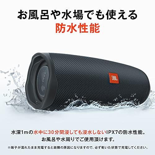 通常1-5営業日で発送:音楽再生を楽しむスピーカーとしてだけでなく、モバイルバッテリーとしても使用可能なポータブルBluetoothスピーカー 前モデルから最大40Wの出力にグレードアップ。さらに、楕円形ウーファー、独立した高音域ユニット、パッシブラジエーター2基を搭載することで、より深みのある重低音と大音量を実現し、あらゆる場所でJBLならではの迫力のあるサウンドをお楽しみいただけるようになりました。 IPX7の¥防水性能も装備しているので、突然の雨や落水が心配されるキャンプやビーチはもちろん、キッチンやお風呂場などご自宅の水回りでも安心してお使いいただけます。