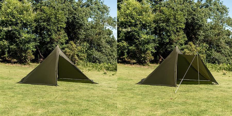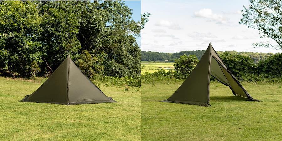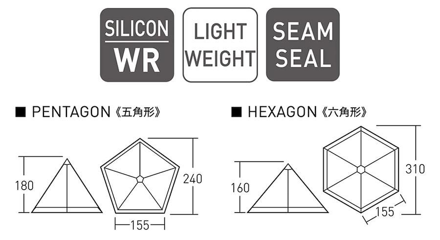 タッソの変形機能を受け継ぐ、リップストップ採用の超軽量モノポール。フライとポールの総重量は1.2kg。五角形、六角形への変形が容易でバックパッカー、ソロキャンプ、山テント泊に最適。