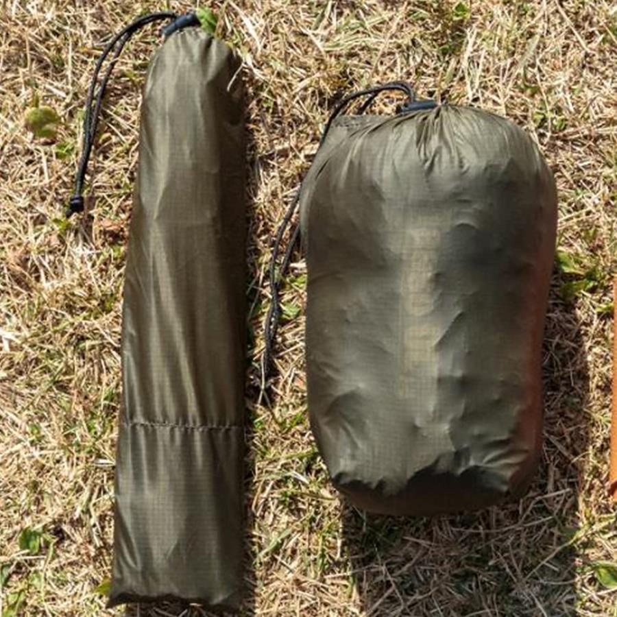 素材:(フライ)ナイロンリップストップ20d(耐水圧1,800mm)、(ポール)6061アルミ合金直径16mm、13.5mmサイズ:155(横幅)×180(高さ)×240~310cm(奥行)重量:フライ約0.86kg、ポール約0.36kg付属品:張り綱、アルミペグ、収納袋カラー:カーキ対象シーズン: 4 saison