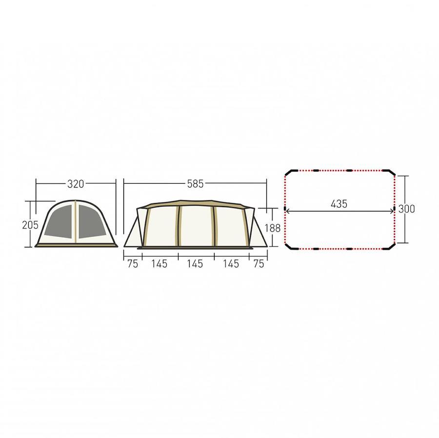 素材:(フライ)T/C(耐水圧350mm)ポリエステル210d(耐水圧1800mm)、(ルーフフライ)ポリエステル75d(耐水圧1,800mm)、(フレーム)6061アルミ合金(直径19mm、直径14.5mm)サイズ:320(横幅)×205(高さ)×585cm(奥行)重量:フライ約15.7kg、ルーフフライ約1.2kg、ポール約8.1kg付属品:グランドシート、張り綱、アイアンハンマー、スチールピン、収納袋カラー:オフホワイト×サンドベージュ