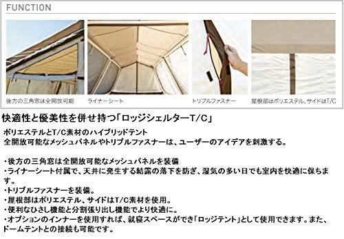 快適性と優美性を併せ持つ[ロッジシェルターT/C]。ポリエステルとT/C素材のハイブリッドテント。全開放可能なメッシュパネルやトリプルファスナーは、ユーザーのアイデアを刺激。シームシール加工:防水加工が施されている外幕素材でも、縫目からの雨の侵入を防ぎきれません。縫製部の縫目をふさぎ、高い防水性を保持することを可能にしました。テフロン加工:雨をはじく「撥水性」、油をはじく「撥油性」、汚れを除去しやすい「防汚性」、揉みや摩擦に強い「耐摩擦性」に効果を発揮します。UVカット加工:紫外線は幕体の素材劣化を引き起こす要因になります。製品の強度劣化を緩和し、耐久性を維持させます。