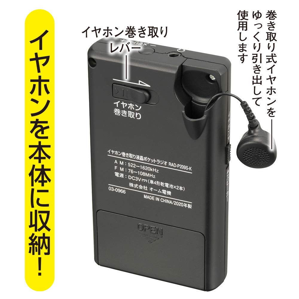 3営業日以内に発送≪新品未開封品≫:【 特 長 】● イヤホンを巻き取り、本体に収納できます● 一発選局でクリアなデジタル受信● AM、FMステレオ(付属のステレオイヤホン使用時)受信● ワイドFM(FM補完放送)対応● 自動選局/登録ができます● デジタル音量表示● アラーム/時計機能、スリープ機能● 誤操作防止機能● 照明付液晶表示● モノラルスピーカー搭載● ステレオヤホン付属● カラーはブラックです