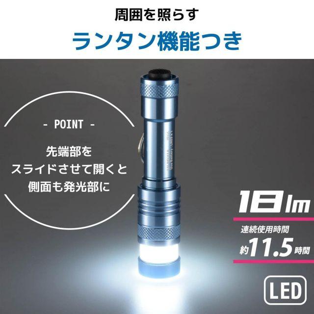 【特長】●保護等級IP66の防水仕様●キーホルダー付き●ランタン機能付き先端部をスライドさせて開くと、全周明るく照らします●FL-1STANDARD(アメリカ可搬型照明器具標準基準ANSI/NEMAFL1-2009)準拠●本体カラーブルー