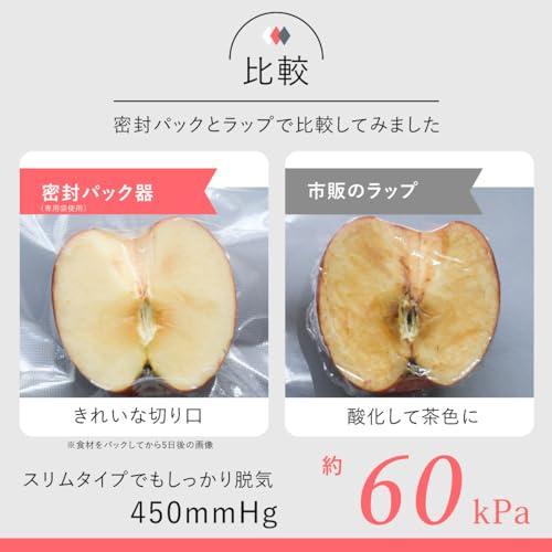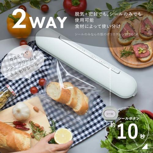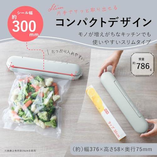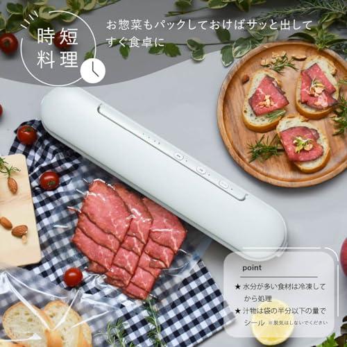 通常1-5営業日で発送:【 特 長 】 ◆コードレスだから、場所を選ばず新鮮密封 ◆便利な開封カッター付き ◆小分け保存に便利です ◆密封で臭い移りを防止します ◆食品の酸化を軽減します ◆パックのまま調理ができます ※専用袋・専用ロール袋使用の場合 ◆衣類等の圧縮もできます【 仕 様 】 ◆電源:DC5V/2A(ACアダプター別売) ◆内蔵電池:充電式リチウムイオン電池(交換不可) ◆充電時間:約5時間 ◆脱気圧:約60kPa(450mmHg) ◆接着部温度:約140℃ ◆シール可能幅:約300mm ◆シール時間:脱気+シール時…約30秒、シール時…約10秒 ◆休止時間:約20秒◆使用可能な袋:脱気+シール…専用袋/専用ロール袋、シールのみ…専用袋/専用ロール袋、ポリエチレン袋(厚さ:0.02~0.06mm)※うすいポリエチレン袋の場合、シール時に溶断したりうすく変色することがあります ◆外形寸法:(約)幅376×高さ58×奥行75mm◆質量:約786g ◆付属品:保護材、保証書付取扱説明書、USBケーブル(USB Type-A 入力端子/USB Type-C 出力端子)1m≪ご注意≫※ 本製品は食品などを入れた袋から空気を抜いて密封保存するための機器です。※ 密封パックしたからといっても滅菌、殺菌されません。保存には充分注意してください。※ 食品を保存するときは、密封パックしたのち冷蔵庫や冷凍庫にいれてください。