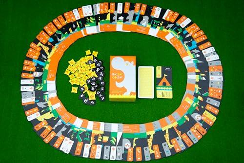 ナショナルパークづくりは、一筋縄ではいかない。住む場所をもとめてやってきたどうぶつたちは、ぐるぐると大移動をはじめてしまった! 水と草が好きなカバ、大きなゾウ、1頭だけでいたいクマ…。まわってくるカードの中からちょうどいい場所を確保したいけど、どうぶつか場所か、どれからとるか迷って「ヴ~ン」と思わずうなり声。 カードを一枚ずつ取ってまわす「ドラフト」形式で、場所とどうぶつを過不足なくマッチさせ、どこよりもゴキゲンなナショナルパークをつくろう!