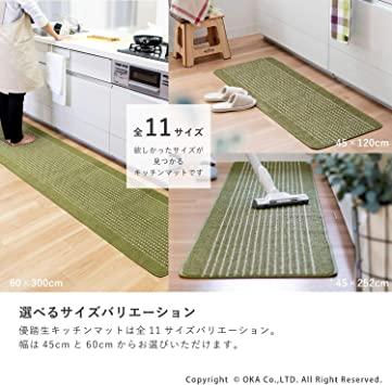 通常1-5営業日で発送:本体サイズ:約60cm×252cm(マットの高さ 約8mm)本体重量:約1511g素材・材質:ポリプロピレン100%(裏面すべり止め加工)生産国:日本ご家庭で繰り返し洗濯することを考えて開発された優踏生キッチンマット。軽くてやわらかいので簡単にたためて洗濯ネットに入れて気軽にお洗濯できます。