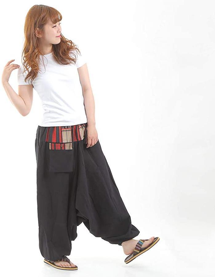 エスニックファッション・アジアンファッションというと、「柄が奇抜・デザインが派手・ボタンやチャックが多くて着方が分からない」など、様々な障壁がある様に思えますが、こちらのサルエルパンツは初心者の方にもラクラク着て頂ける「シンプル・いつでも気楽に・色を揃えて楽しめる」をコンセプトにしたサルエルパンツです。