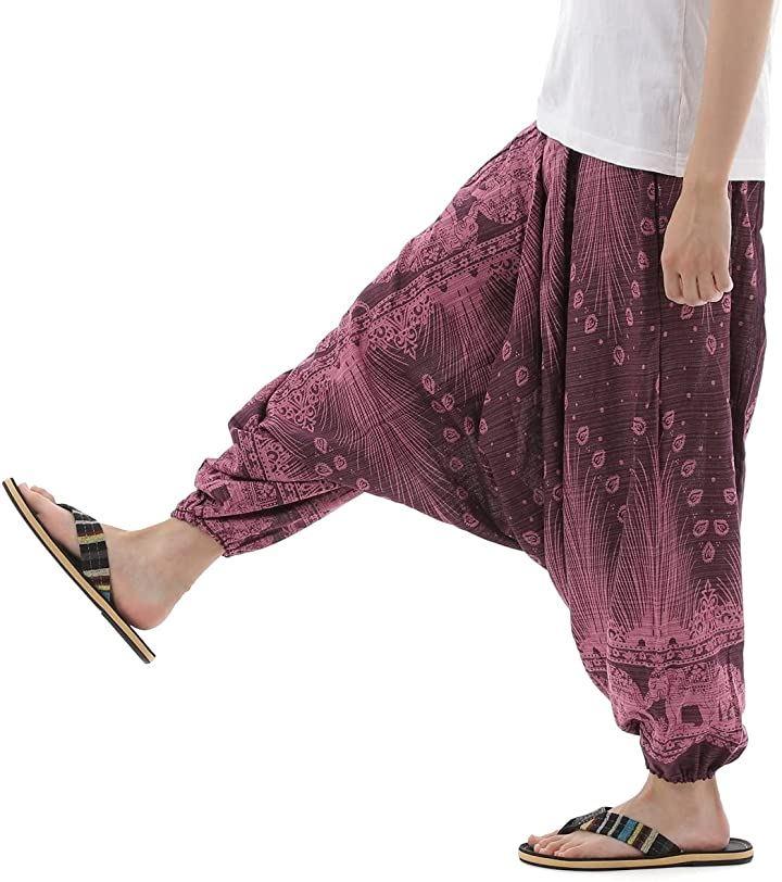 OKI Sarouel Pants Aladdin Pants Thai Pants Men's Women's Unisex Feather Pattern