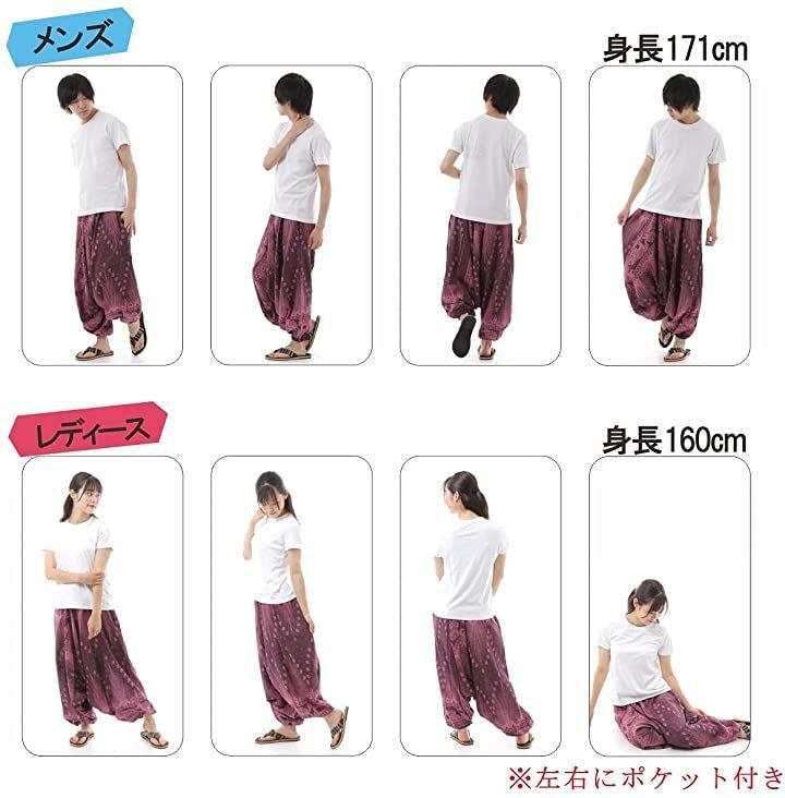 エスニックファッション・アジアンファッションというと、「柄が奇抜・デザインが派手・ボタンやチャックが多くて着方が分からない」など、様々な障壁がある様に思えますが、こちらのサルエルパンツは初心者の方にもラクラク着て頂ける「シンプル・いつでも気楽に・色を揃えて楽しめる」をコンセプトにしたサルエルパンツです。