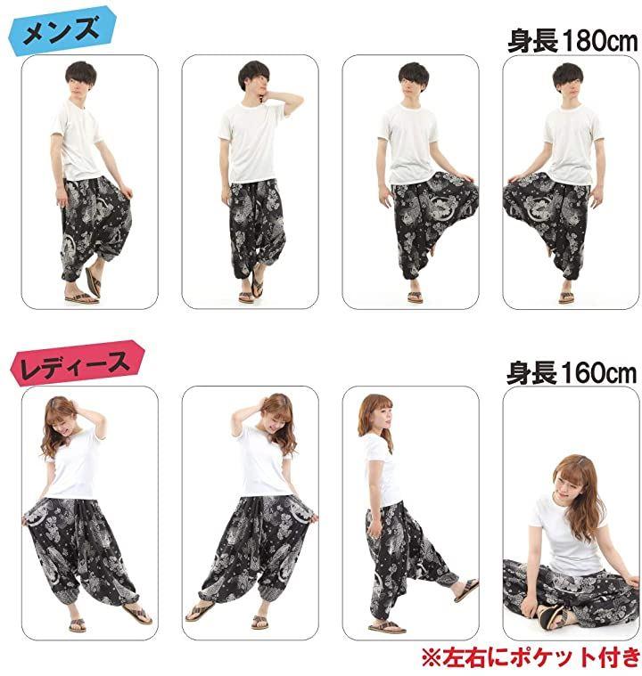 ゆったり着られて春~秋まで普段着としても出掛けられ、またイベントやダンス、お祭りなどでも幅広く愛されているサルエルパンツ(アラジンパンツ)です。