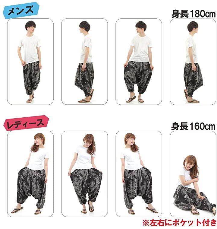 ゆったり着られて春~秋まで普段着としても出掛けられ、またイベントやダンス、お祭りなどでも幅広く愛されているサルエルパンツ(アラジンパンツ)です。