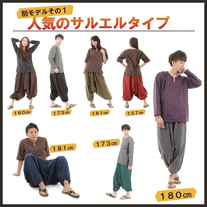 エスニックファッション・アジアンファッションというと、「柄が奇抜・デザインが派手・ボタンやチャックが多くて着方が分からない」など、様々な障壁がある様に思えますが、こちらのサルエルパンツは初心者の方にもラクラク着て頂ける「シンプル・いつでも気楽に・色を揃えて楽しめる」をコンセプトにしたサルエルパンツです。