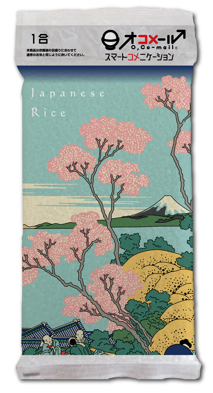 新潟産こしひかりを浮世絵風のパッケージに真空包装しました。150gとなります。