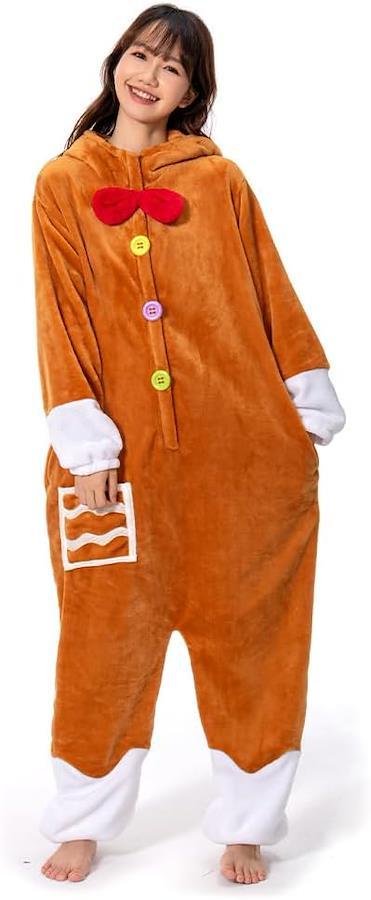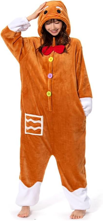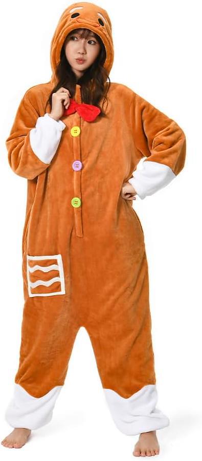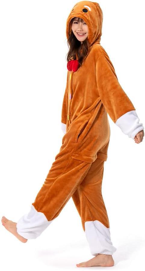 ■商品名[OLAOLA] 着ぐるみ ジンジャーブレッドマン クリスマス コスチューム コスプレ パーティー 着ぐるみパジャマ 大人用 可愛い フランネル 男女兼用 (L 175-185)
