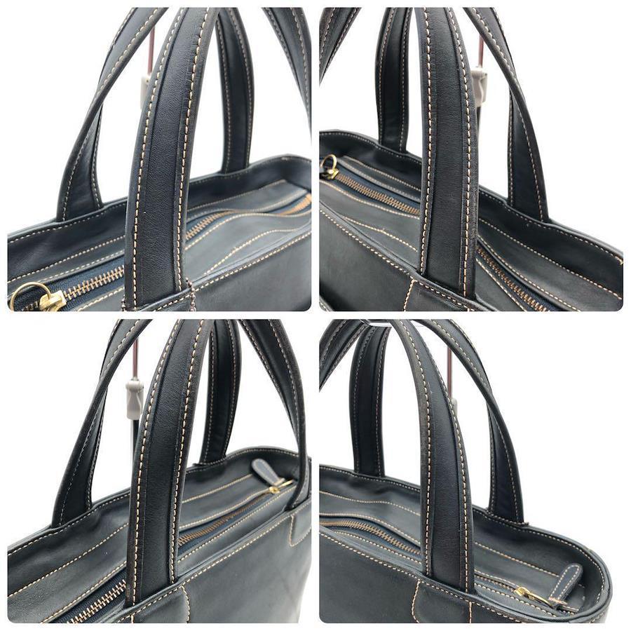 【サイズ】横約30cm x 縦約20cm x マチ約12.5cm / ハンドル約34cm※誤差はご了承下さい。【素材・色】レザー少し青みがかったダークグレー、黒ではございません。【仕様】ファスナー開閉式外側:オープンポケット1内側:オープンポケット1【状態】小さな引っかき傷あり、角スレ若干あり(画像参照下さい) 中古品となりますので小傷などございますが特に目立った大きなダメージ無く、まだまだご愛用頂けるお品かと思います。【USED品について】写真を拡大するなどしてしっかりご覧になったうえでご検討下さい。 / 中古品ですので小傷等お気になされる神経質な方はご遠慮ください。 / 新品、展示品レベルのきれいな状態のお品物でも一旦はどなたかの手に渡ったものであることをご理解の程お願いいたします。 / 前所有者のメンテナンス状況、保管状況はわかりかねます点ご了承下さい。
