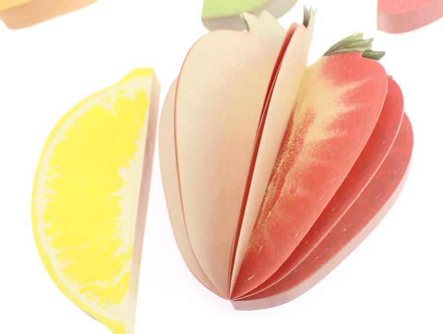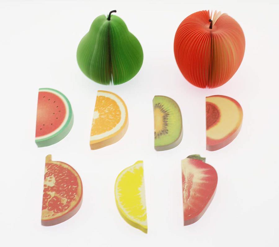 手の平に収まるぽっこりしたフォルムが可愛い、フルーツ立体型のメモ帳9種類セットです。