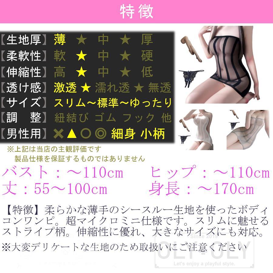 【商品内容】ワンピース+ニーハイストッキング+穴あきTバックショーツ=計3点セット 【サイズ】女性用フリーサイズ(S~3L相当)バスト:~110cm、ヒップ:~110cm、丈:55~100cm、身長:~170cm 【カラー】ブラック(ストッキングとショーツのカラー・デザインはおまかせになります) 【特徴】柔らかな薄手のシースルー生地を使ったボディコンワンピ。超マイクロミニ仕様です。スリムに魅せるストライプ柄。伸縮性に優れ、大きなサイズにも対応。 ※大変デリケートな生地のため取扱いにご注意ください ※他にもルームドレス・ベビードール・レオタード・マイクロビキニ・ムタンガなど、豊富なバリエーションをご用意しております 【使用上の注意】 洗濯はぬるま湯にて軽く手洗い・室内干しを推奨。色物は色落ちしますので白物と一緒の選択は避けてください。衣類に接着されているアクセサリーなどは洗濯により外れることがあります。海外製品につき、糸のほつれや縫製の甘い部分などはご了承願います。生産ロットにより予告なく仕様が変更されることがあり、写真と異なる場合は現物を優先とさせていただきます。下着類はデリケートな素材が多いため、着脱時に爪やアクセサリーなどで引っ掻いたりしないようご注意ください。 こんな用途におすすめ:ハロウィン・クリスマス・バレンタインデー・忘年会・新年会・コスプレパーティ等の余興、イベント衣装やインナーとして。インスタ・SNS・グラビア・記念写真など撮影用衣装として。結婚記念日・結婚祝い・婚約祝い・出産祝いなど記念日のプレゼントやジョークグッズとして。男性が着用可能なコスプレもございます。女装用・セックスレス・マンネリ化の解消にも。アニメキャラ・癒し・萌え・熟女・学生・SM系~過激ベビードール・極小マイクロビキニ・ボディストッキング・スクール水着など、人気セクシーランジェリーから注目のデザインをセレクト。 穴あき・胸開き・透ける素材・ハイレグ・Tバック・紐パン・レースなど、異なるバリエーションからお好みのセット・単品が選べます。梱包サイズ?:?22.7x17.4x2.4cm;50gでの取り扱い開始日?:?2022/5/12メーカー?:?OLYOLYASIN?:?B0B1753MNR売れ筋ランキング:ドラッグストア-93,754位(ドラッグストアの売れ筋ランキングを見る)アダルト用コスチューム-858位カスタマーレビュー:3.45つ星のうち3.46個の評価vardpAcrHasRegisteredArcLinkClickAction;P.when('A','ready').execute(function(A){if(dpAcrHasRegisteredArcLinkClickAction!==true){dpAcrHasRegisteredArcLinkClickAction=true;A.declarative('acrLink-click-metrics','click',{"allowLinkDefault":true},function(event){if(window.ue){ue.count("acrLinkClickCount",(ue.count("acrLinkClickCount")||0)+1);}});}});P.when('A','cf').execute(function(A){A.declarative('acrStarsLink-click-metrics','click',{"allowLinkDefault":true},function(event){if(window.ue){ue.count("acrStarsLinkWithPopoverClickCount",(ue.count("acrStarsLinkWithPopoverClickCount")||0)+1);}});});(#lf)(#lf)(#lf)商品購入前に、ストア紹介ページをご確認ください。
