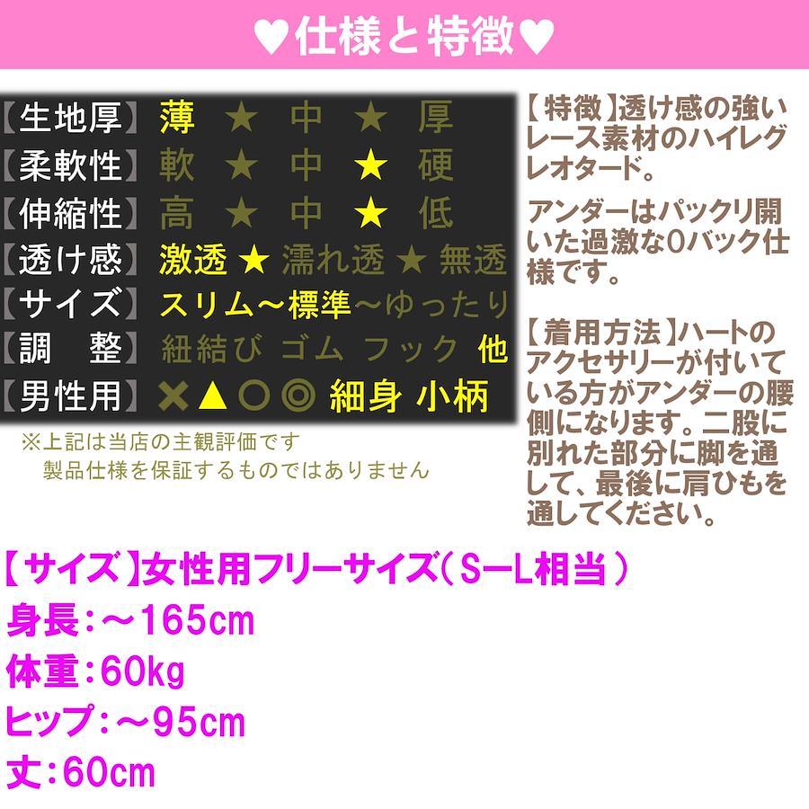 【商品内容】Oバック 穴あき ハイレグレオタード 【サイズ】女性用フリーサイズ(SーL相当)身長:~165cm、体重:60kg、ヒップ:~95cm、丈:60cm 【カラー】バリエーションあり。写真参照ください。 【特徴】透け感の強いレース素材のハイレグレオタード。アンダーはパックリ開いた過激なOバック仕様です。 【着用方法】ハートのアクセサリーが付いている方がアンダーの腰側になります。二股に別れた部分に脚を通して、最後に肩ひもを通してください。 ※他にもルームドレス・ベビードール・レオタード・マイクロビキニなど、豊富なバリエーションをご用意しております 【使用上の注意】 洗濯はぬるま湯にて軽く手洗い・室内干しを推奨。色物は色落ちしますので白物と一緒の選択は避けてください。衣類に接着されているアクセサリーなどは洗濯により外れることがあります。海外製品につき、糸のほつれや縫製の甘い部分などはご了承願います。生産ロットにより予告なく仕様が変更されることがあり、写真と異なる場合は現物を優先とさせていただきます。下着類はデリケートな素材が多いため、着脱時に爪やアクセサリーなどで引っ掻いたりしないようご注意ください。 こんな用途におすすめ:ハロウィン・クリスマス・バレンタインデー・忘年会・新年会・コスプレパーティ等の余興、イベント衣装やインナーとして。インスタ・SNS・グラビア・記念写真など撮影用衣装として。結婚記念日・結婚祝い・婚約祝い・出産祝いなど記念日のプレゼントやジョークグッズとして。男性が着用可能なコスプレもございます。女装用・セックスレス・マンネリ化の解消にも。アニメキャラ・癒し・萌え・熟女・学生・SM系ー過激ベビードール・極小マイクロビキニ・ボディストッキング・スクール水着など、人気セクシーランジェリーから注目のデザインをセレクト。 穴あき・胸開き・透ける素材・ハイレグ・Tバック・紐パン・レースなど、異なるバリエーションからお好みのセット・単品が選べます。での取り扱い開始日?:?2024/12/4メーカー?:?OLYOLYASIN?:?B0DPK5PZWM部門?:?レディース売れ筋ランキング:ドラッグストア-279,466位(ドラッグストアの売れ筋ランキングを見る)アダルト用コスチューム-3,734位登録情報取り扱い案内 手洗いのみ【商品内容】Oバック 穴あき ハイレグレオタード【サイズ】女性用フリーサイズ(SーL相当)身長:~165cm、体重:60kg、ヒップ:~95cm、丈:60cm【カラー】バリエーションあり。写真参照ください。【特徴】透け感の強いレース素材のハイレグレオタード。アンダーはパックリ開いた過激なOバック仕様です。【着用方法】ハートのアクセサリーが付いている方がアンダーの腰側になります。二股に別れた部分に脚を通して、最後に肩ひもを通してください。(#lf)(#lf)(#lf)商品購入前に、ストア紹介ページをご確認ください。