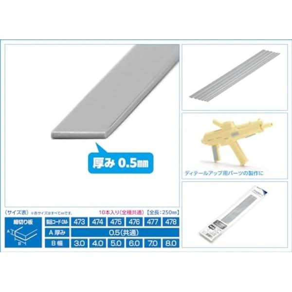 ウェーブ マテリアルシリーズ プラ材料 グレー 細切り板 0.5×8.0mm 10本入 ホビー用素材 OM-478