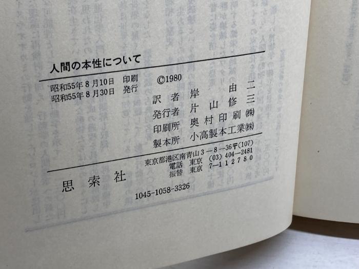 商品名:人間の本性について O・ウィルソン 思索社 昭55初版