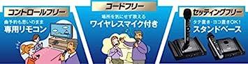 トリプルフリーを実現! 曲予約も思いのままに、専用リモコンでコントロールフリー。場所を気にせず歌えるワイヤレスマイクでコードフリー。タテ置き・ヨコ置きOKのスタンドベースでセッティングフリー。