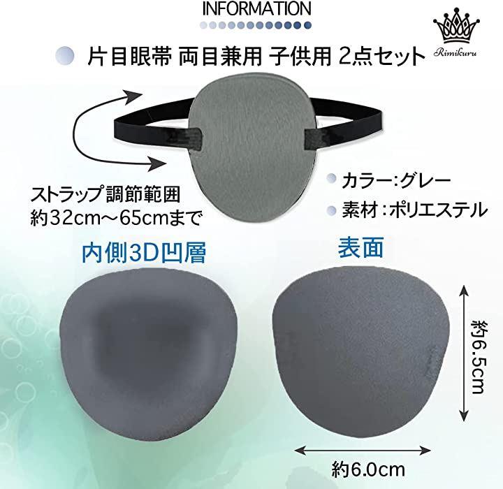 「商品仕様」セット内容:片目眼帯 両目兼用 合計2点セット カラー:グレー サイズ:(子供用)約6.5cmx6.0cm ストラップ調節範囲:約32cmから65cmまで 素材:ポリエステル *モニターの環境等により、色の見え方に若干差が生じる場合がございます。