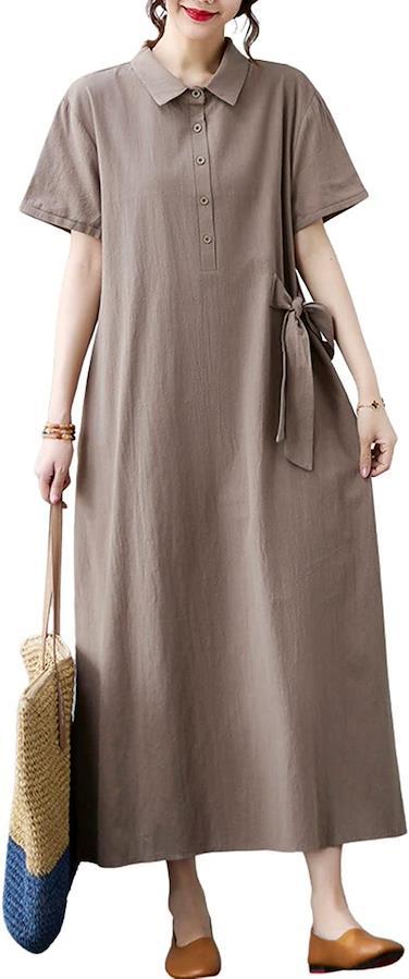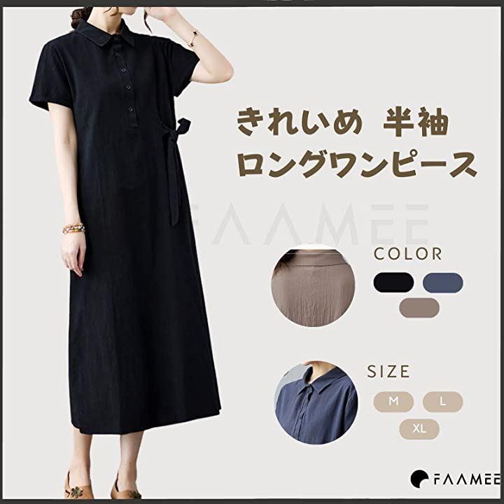 襟付きの上品で落ち着いた印象を与えるかわいい半袖夏ワンピが新登場。こなれ感のある着こなしをかなえるロング丈ワンピース・ややゆったりしたサイズのデザインで、華奢見え効果に期待。
