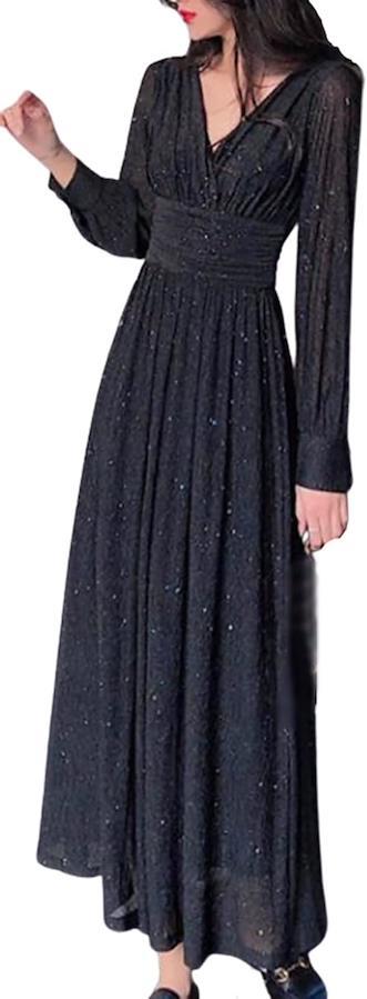 ヨウリュウシフォンにキラキラ光るラメを施した、特別感のある生地を使用したワンピースドレス。
