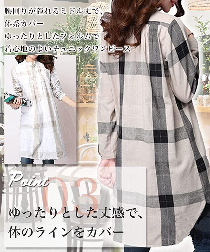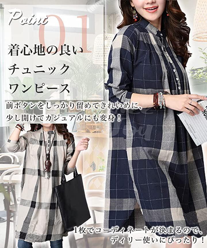 嬉しいゆったりなミドル丈。ゆったりとしたフォルムで着心地の良いチュニックワンピースです。