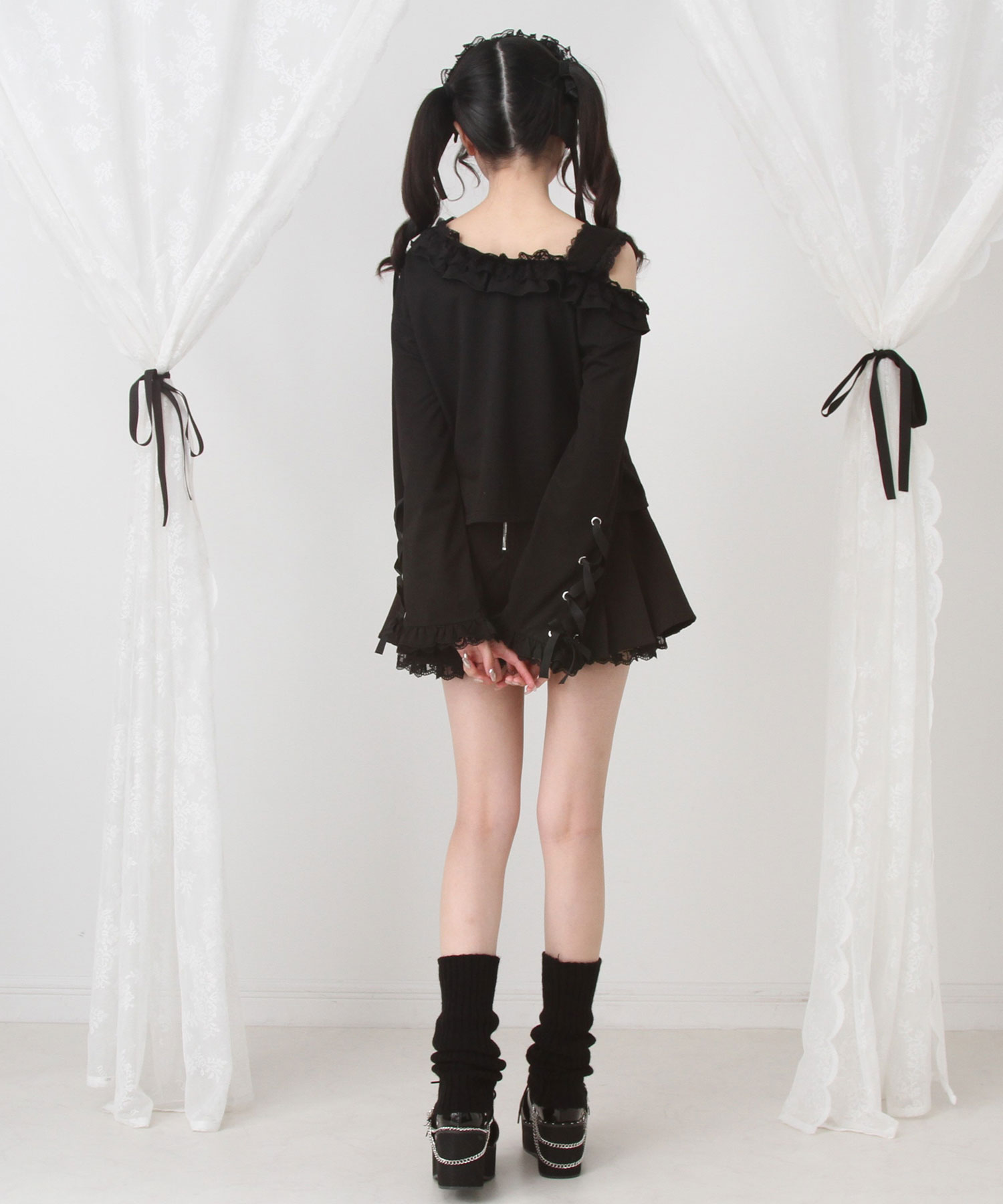 袖部分のレースアップや裾のフリルも、細部までこだわった可愛らしさを演出。