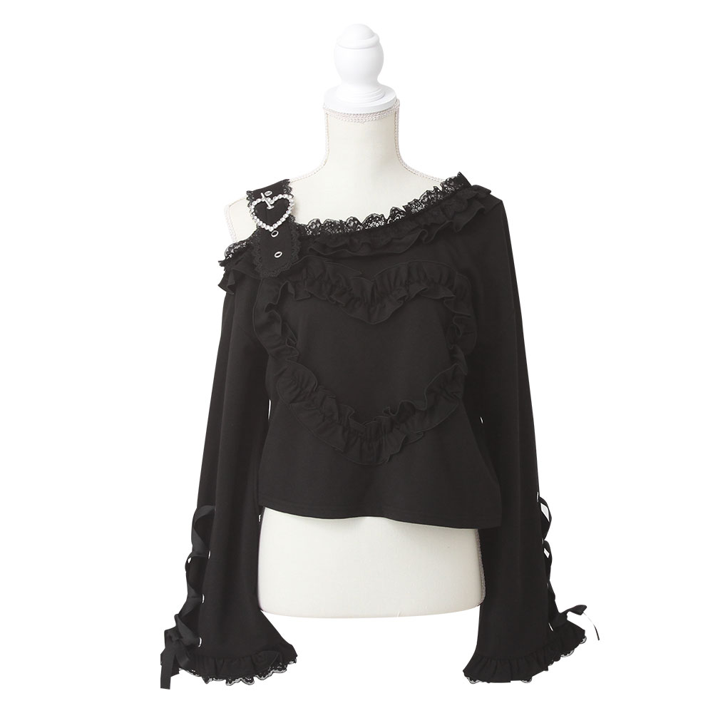 ワンショルダーハートレースフリルトップス