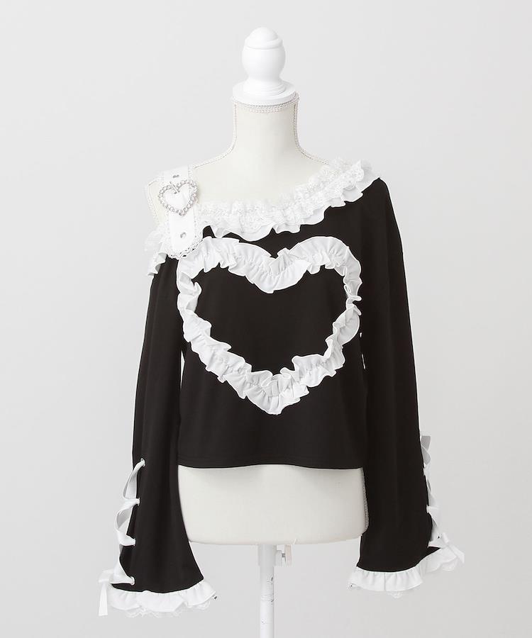 ワンショルダーハートレースフリルトップス