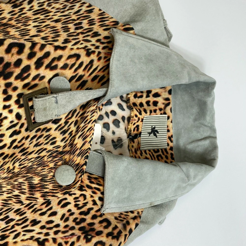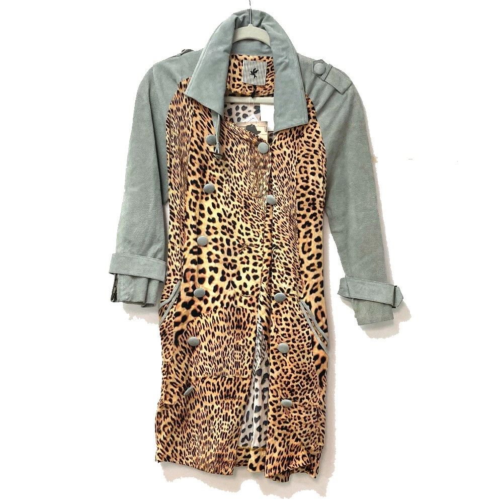 One Teaspoon Leopard Print Outer Jacket, Rayon/Pigskin, Women's, Beige/Gray (Pre-owned)