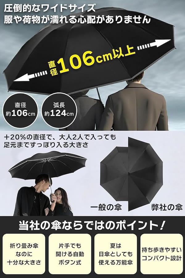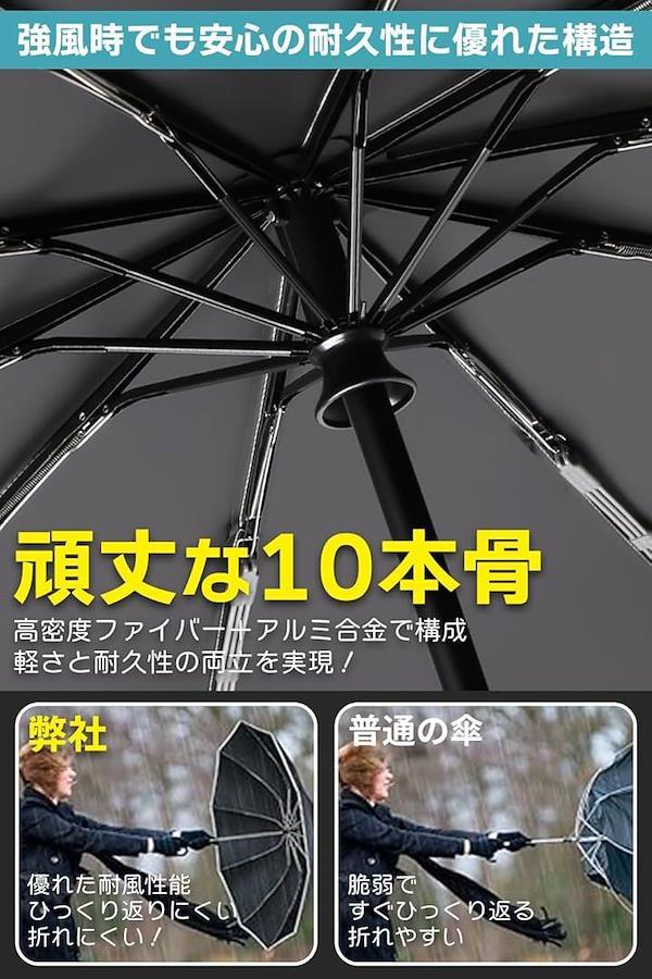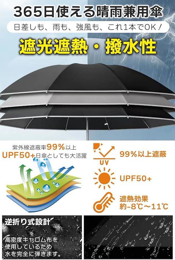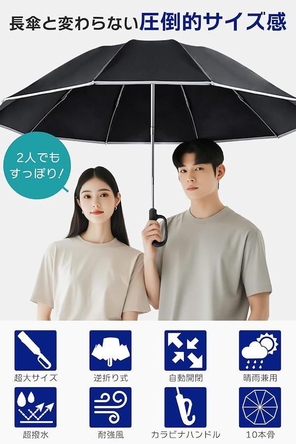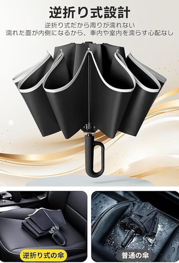 One-touch 0.5-second automatic opening and closing Folding umbrella Reverse folding type, high specs, reinforced 10 ribs Folding umbrella Parasol Large size Super water repellent Teflon coating Windproof UV protection UV protection Durable For both sunny and rainy days Carabiner hook Men's Women's Storage cover included