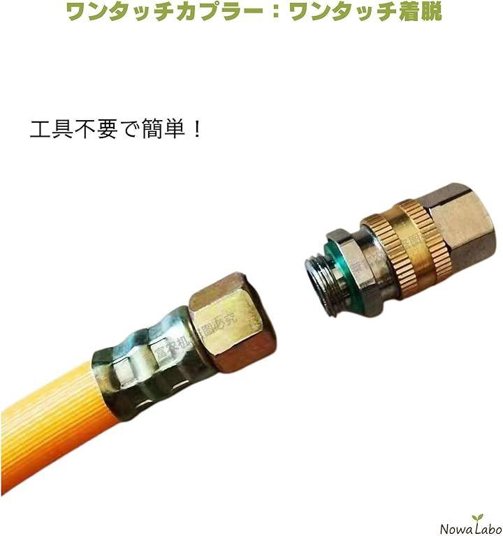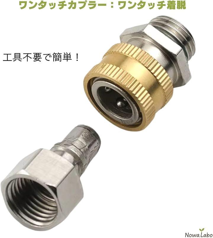 「ワンタッチ着脱で作業効率アップ」 M14x1.5メスネジに対応し、ノズルの接続・取り外しが片手でスムーズ。
