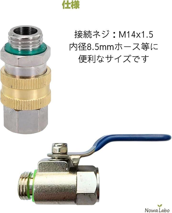 「セット内容と仕様」 ワンタッチカプラー(M14x1.5 オス-メス) ボールコック(M14x1.5 オス-メス)