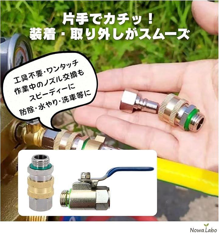 「園芸・農業の噴霧作業に最適」 動噴や噴霧器とノズルの接続に便利な、ワンタッチカプラー&ボールコックのセット。
