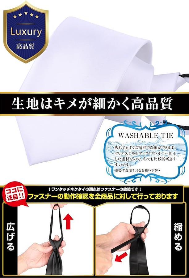 ワンタッチで装着可能なファスナー式のネクタイです。